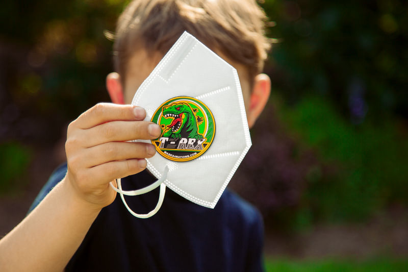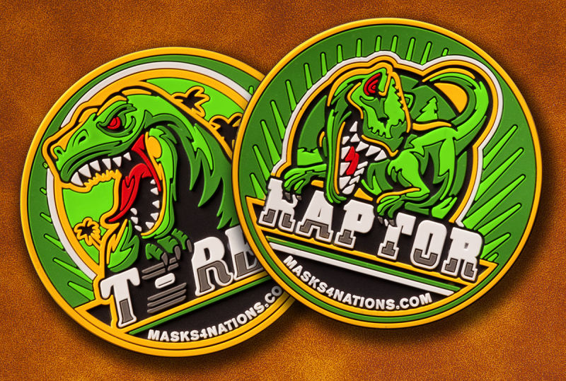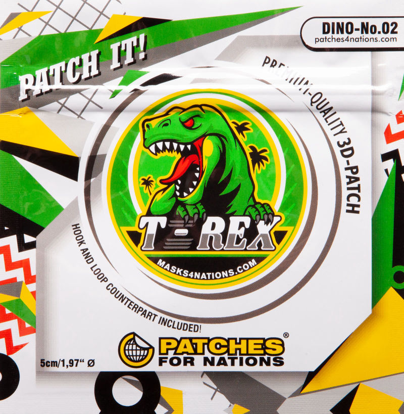 Die Dino-Patches haben eine Größe von 5cm im Durchmesser. Damit passen sie auf jedes Cap, jede Maske oder jeden Tornister.
